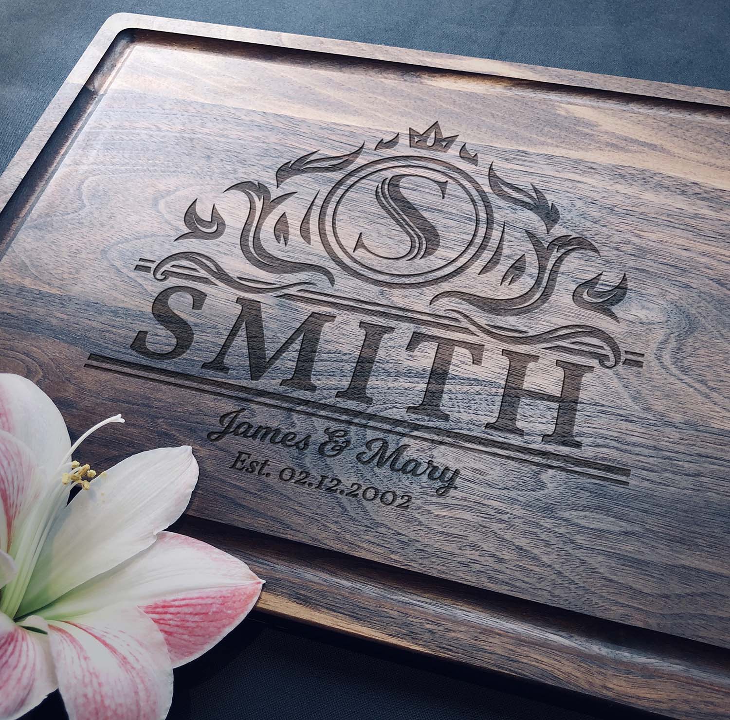 Our cutting boards come in two different materials, Maple and Walnut, which provide light and dark color options, respectively.