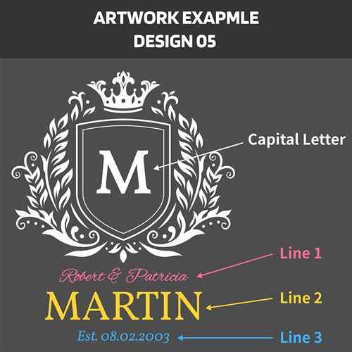 The color parts in the artwork examples can be personalized. Each color refers to one line of personalization.