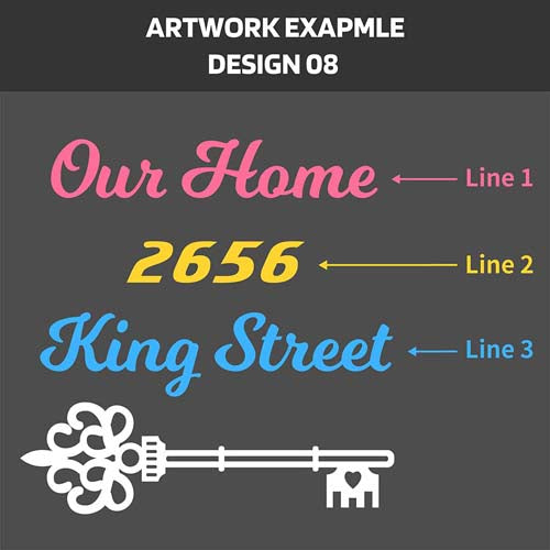 The color parts in the artwork examples can be personalized. Each color refers to one line of personalization.