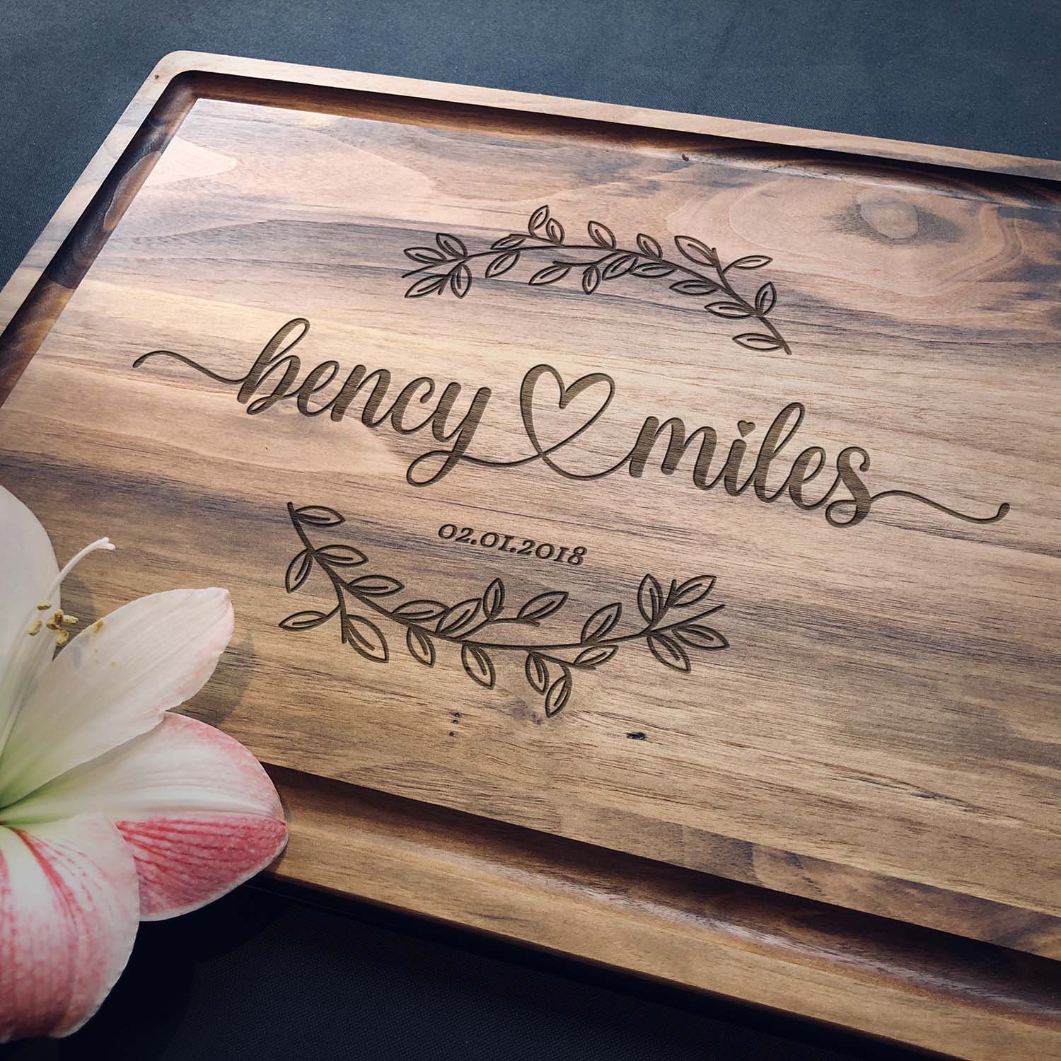 Our cutting boards come in two different materials, Maple and Walnut, which provide light and dark color options, respectively.