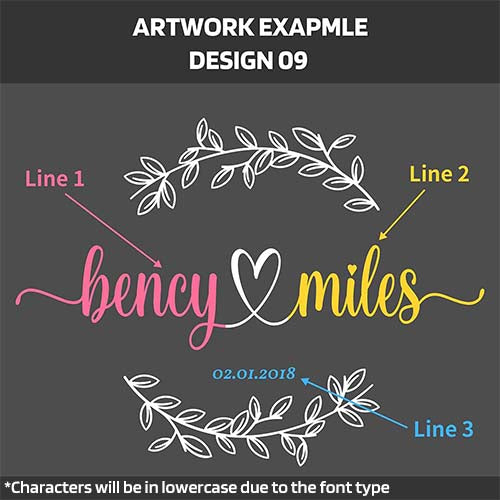 The color parts in the artwork examples can be personalized. Each color refers to one line of personalization.