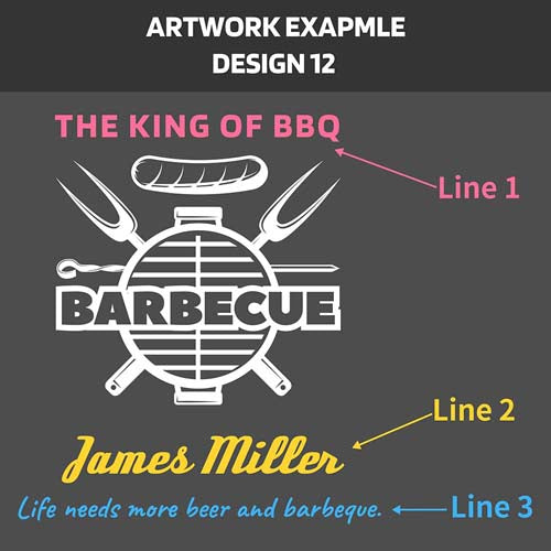 The color parts in the artwork examples can be personalized. Each color refers to one line of personalization.