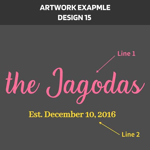 The color parts in the artwork examples can be personalized. Each color refers to one line of personalization.